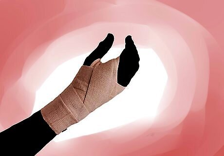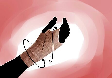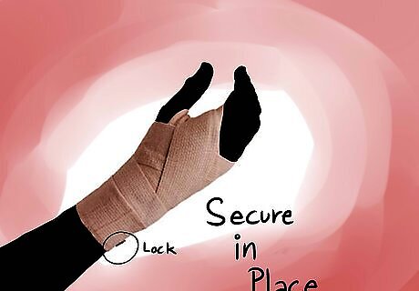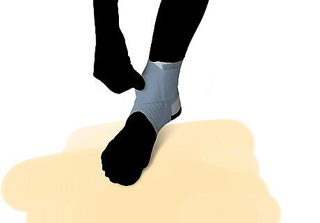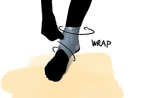 Wrap the bandage around your ankle a few times, then wrap it around the base of your foot (the part between the toes and your heel). Alternate until the bandage is too short to go any further. Tuck it in at the top, pin it in place, or step on it to hold it in place.