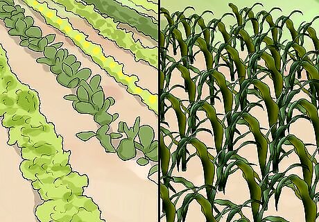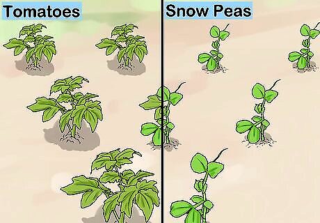Plant your crops. For organic farms, crops should be grown in wide beds. This extra space between rows helps naturally repel fungal attacks as it increases air circulation. You want to make sure you do not walk on your crops so, if possible, have raised beds on your farm. Group your plants by type. All the tomatoes should be grown in one place, for example, and all the snow peas should be grown in another. Raised beds are portions of soil raised slightly off the ground. If you are able to raise soil in your area, do so, as this will reduce some traffic on your plants. Plant your seeds with ample space in between, as this will allow crops to thrive. For specific instructions on how much space, you will have to look at a Farmer's Almanac or similar publication for instructions on the precise seeds you're planting. While wide, raised beds generally work for organic crops, the precise means of planting your crops does depend on the type you chose. Always research your crops prior to planting, and reach out to other organic farmers for advice.