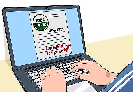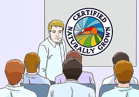 Learn the process of becoming certified. The process varies based on which program you're working with. You can get certified using a private, foreign, or state entity. Usually, you have to prove your farm meet United States Department of Agriculture (USDA) standards for organic farming practices. There is usually an application process in which you will have to provide a detailed account of how you grow your crops. An agent will review your application and accept it if he feels your farm meets the correct standards. Usually, there is also an on site inspection. There are often fees associated with getting certified, which can be costly. Fees vary greatly between organizations, so choose an organization within your price range to get certified.