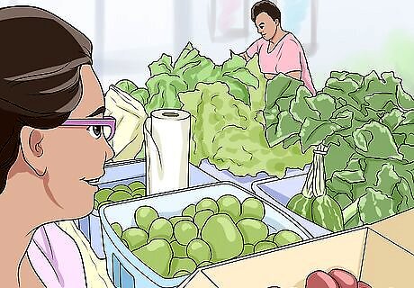 Visit a local farmer's market. Most farmers here will practice organic techniques to grow their crops. Therefore, crops sold here are likely to thrive naturally in your area. This will give you a sense of which crops to plant, and also introduce you to local farmers. You can make connections you can use later when you need assistance and advice. You can look online to find local farmer's markets in your area, or ask at a local food co-op. See which days the markets are operating, and make a point of visiting the farmer's markets on these days. See what kind of fruit, vegetables, flowers, and other plants are being sold. Ask farmers if they grow organically. Ask them about the type of soil they have on their farms. Try to network with some local farmers. Ask for phone numbers and email addresses. If you need advice along the way, you can reach out to a local farmer with experience growing organic produce. Later, when you're ready to sell your crops for profit, you will have a working relationship with the local market.