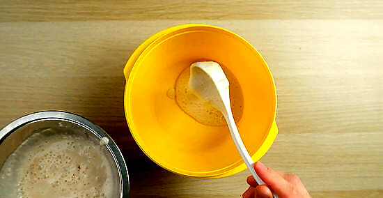 Add 1/2 cup (60 grams) of flour and ⁄2 cup (120 ml) of water for each feeding. Combine these ingredients in the same container that you’d been using to store your starter and mix them until they’re evenly spread. Place your cover over the container and place it in your fridge or on your countertop depending on how soon you plan on using your starter. With your sourdough starter ready to feed, you may need to remove some of the excess starter. Your sourdough will have risen considerably since you started, and adding more ingredients with your feeding may overflow your container.