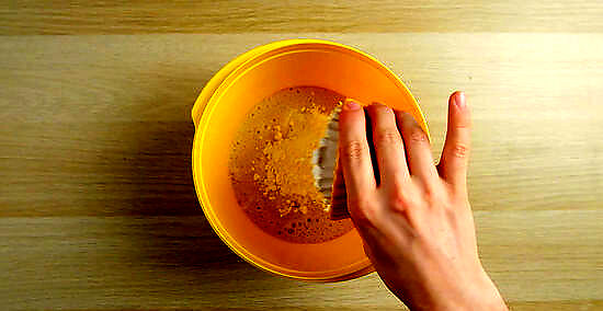 Continue stirring until your starter is fully mixed with the water and flour. Stir in a circular motion so that you’re reaching each section of your container. This is best done in an open area, since air will help move the process along. Scrape your stirring spoon along the bottom of the container while you mix to remove any excess flour. If you’re using a clear plastic or glass container, lift it over your head to check the bottom for any chunks of unmixed flour. Stir until your mixture is completely smooth. There shouldn’t be any chunks of flour or water left in your container.