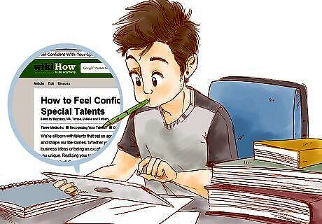 Embrace your talents. Be grateful for them. It's easy to repress talents or waste time wishing you had talents you don't, and a lot of people get stuck in a rut doing just that. That's why once you've identified and embraced your special talents, many people would consider you to be very lucky. Just reading this article is a first step toward owning your talents, and now you're on your way to feel just how rich life can be when you're exercising your special talents. Now that you're ready to make your talents a bigger part of your life, it's time to develop them so you can build up your confidence.