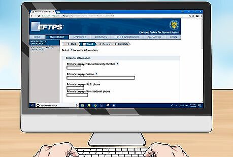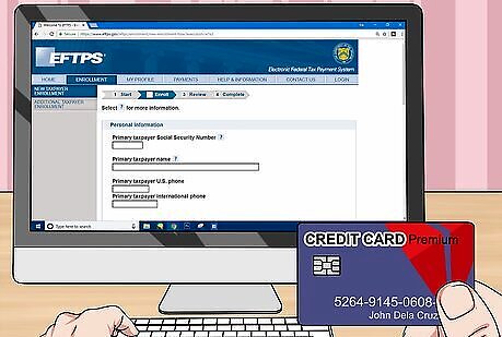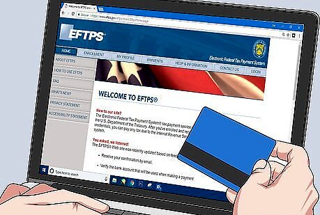 Set up an account on the Electronic Federal Tax Payment System (EFTPS). You can submit payments and deposits to the IRS electronically using the EFTPS system. This system only exists for making payments. You can't use it to calculate the payment you owe. It can take a few weeks to fully set up your account. You must apply with your employer identification number (EIN). The IRS will mail you a PIN you can use to complete the set up of your account. Once your account is set up, you can schedule regular payments ahead of the due dates so you don't incur any additional fees or penalties for late payments.