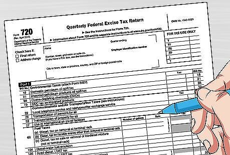Report some kinds of excise taxes on IRS Form 720. Many of the more common excise taxes for small businesses, including fuel taxes, are reported on this form. Form 720 is a quarterly return for calculating exact taxes due – it is not an estimated return. Complete this form using actual numbers from your books. You can file this return through an authorized e-filer, or by mailing the paper forms with payment to the appropriate address listed on the instructions for the form.