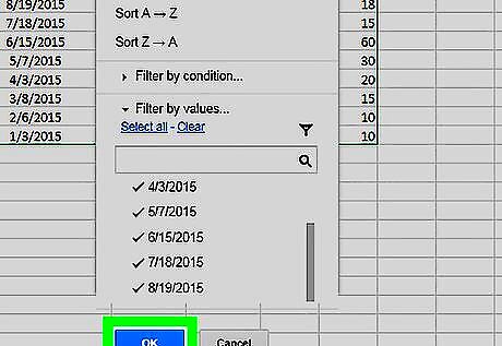 Click the blue OK button. This will filter the selected data range, and hide the filtered cells from your spreadsheet.