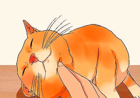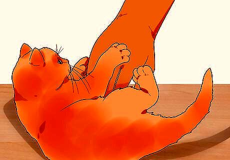 Pet and hold a cat that you are interested in. Spend some time with a new cat before you plan on buying or adopting them to see if you bond. A friendly cat should allow you to hold it and pet it without hissing or growling at you. If the cat does not hiss or growl, then it is a friendly cat! If the cat hisses, growls, bites, or scratches, then it may not be the right cat for you. Always ask a shelter employee before trying to take a cat out of its cage. Make sure to support the cat's feet when you hold it to ensure that the cat feels secure. Avoid making direct eye contact with the cats since this may seem like a challenge to them and invite aggression.