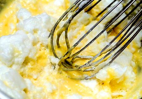 Beat the whites until they have the right consistency. Properly beaten egg whites will be uniformly white and will be rather stiff. They should also form soft peaks and be light and fluffy looking. This is a critical step. Some cookbooks recommend adding a small amount, usually less than 1/4 teaspoon, of Cream of Tartar to help with the beating. The cream helps make the egg whites fluffier.