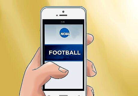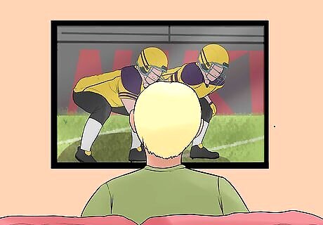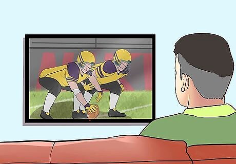 Watch games on TV every Saturday in the fall. College football practically owns sports broadcasting on Saturdays from August until the end of the year. Big fans will dedicate the whole day to watching every big matchup, but even tuning in for just 1 or 2 games will help you get into the spirit. While you watch, listen to the broadcasters and learn as much as you can about the game. Many people actually prefer watching football on TV than going to games, because of the commentary, replays, and clear 1st down markings. Major games can also be played on Thursdays and Fridays. Make sure to check your team’s schedule so you know when to watch!
