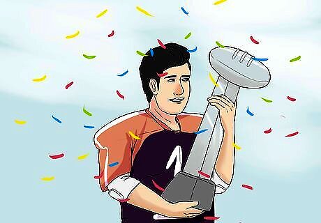 Watch the major awards ceremonies at the end of the season. Even if your team isn’t heading to the playoffs, a player or coach might be honored by an end-of-season award for outstanding play or behavior off the field. There are awards for every position, as well as recognition for student-athletes with exemplary grades and community service accolades. Some of these awards include: The Heisman Trophy, given to the best player in college football. This is considered the premiere award in college football. The Doak Walker Award, given to the best running back. The Jim Thorpe Award, given to the best tight end. The Bronko Nagurski Trophy, given to the best defensive player.