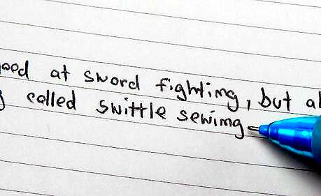 Write about your talents. Your talents will be nothing compared to Earth. So make something up and be creative! Write something like, "I was very good at sword fighting, but also archery and something called swittle sewing. We sewed with a pine cone to make swittles, which were jumpsuits we loved to wear. My mom even told people about my swittle sewing skills."