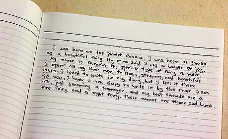 Write about yourself, too. State your real name (because your earth name is an undercover name), age, a little about your friends, and anything you want to! Write something like, "My name is Oceania. My specific type of fairy is water. I spent all my time next to rivers, streams, and beautiful lakes. I loved to write in my diary, but I left it there. So, now, I have a new diary to write in by the river. I am 113, just becoming a teenager, and my best friends are a fire fairy and a night fairy. Their names are Flame and Luna."