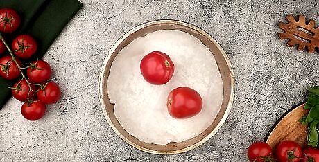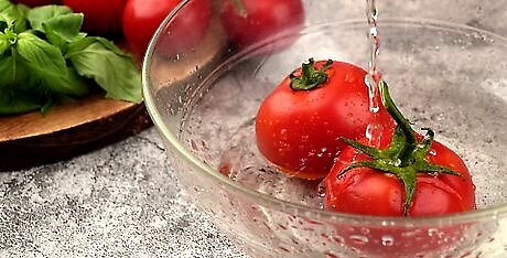 Wash the tomatoes to remove dirt from the garden. Be sure to rub the tomatoes to remove any excess dirt. Pat the tomatoes dry with a clean cloth or paper towel.