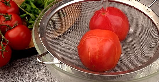 Remove the stem from the tomatoes. The area around the stem is usually tough, so remove it too. Cut off any damaged portion of the tomatoes.