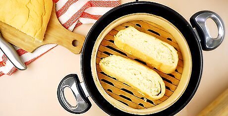 Place 1 to 2 slices of bread on top of the steamer or splatter screen. Leave in place for 1 to 2 minutes, allowing the steam to quickly and effectively soften the bread.