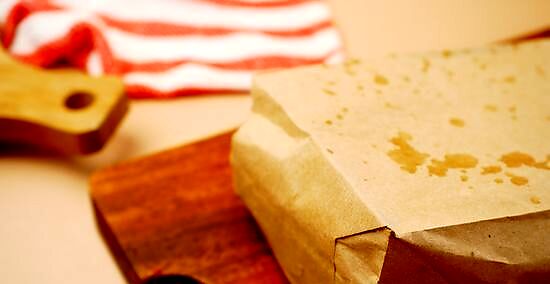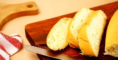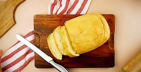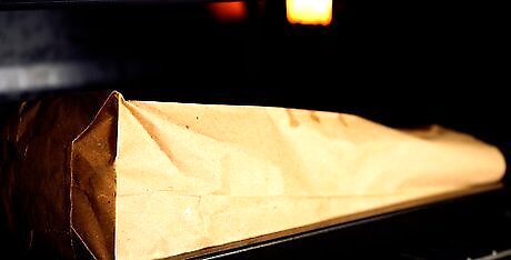 Find a paper bag large enough to place the loaf of bread into. Slide the paper bag over the stale loaf.