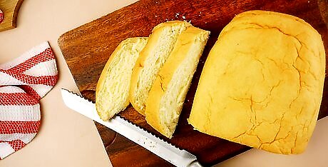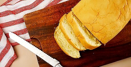 Take the loaf of bread out of the oven. After removing the bread from the oven, your loaf should now have the texture of bread that has been freshly baked.