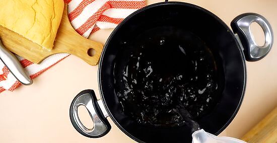 Pour a few cups of water in a shallow and wide pan. Bring to the boil, then reduce to a simmer.