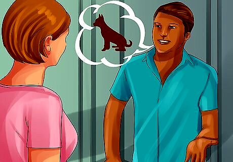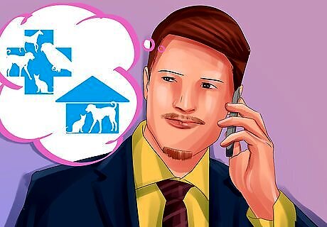 Check nearby homes for the owner. If the dog doesn’t have a tag with owner identification, try finding the owner. You may rescue a dog from a neighborhood or area near houses. Go around to the houses asking if they have a missing dog. Sometimes, the dog just wandered off and ended up in the road. You may consider asking people to describe the dog and keeping it out of eyesight so you don’t give the dog to someone who isn’t the actual owner or may hurt it.