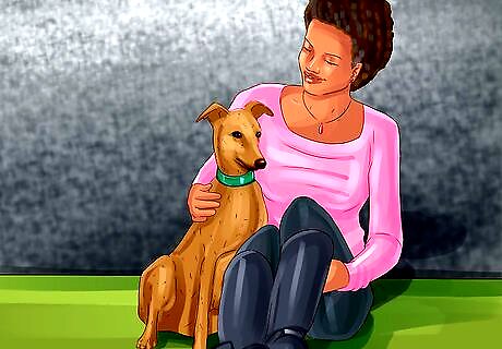 Sit on the ground. If you can’t get the dog to come to you when you are standing up or squatting, try to make yourself less threatening by sitting or lying down. Sometimes, a dog may think you are a threat if you are towering over them. If they see you lying or sitting, they may think you want to pet them or let them crawl into your lap. If a dog is tired or scared, it may come over and lay beside you because they see you as a safe place.