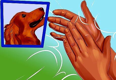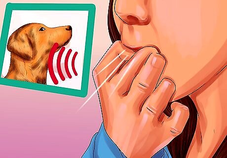 Get the dog’s attention. You want to try to get the dog to come out of the road to you. So, first you need to try to get the dog’s attention. The dog may be running down the road, standing in the middle of the road, or dodging cars, so think of a way to get the dog to pay attention to you. For example, try whistling, loudly calling to the dog, or making noises, like clicking your tongue.