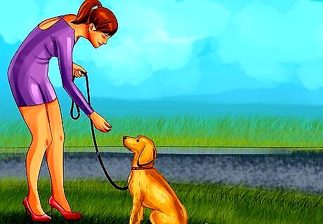 Place a leash on the dog. If you manage to get the dog to come to you, gently slip a leash on the dog’s neck. This can help you keep the dog from running into the road again if the dog gets startled or doesn’t want to be near you. You can try to get the dog into your car without a leash, but a leash helps you secure the dog and keep it safe once you get it out of the road.
