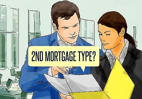 Determine what kind of second mortgage you would like. There are two main kinds. Home equity lines of credit (HELOCs) are open-end, meaning that you can continue borrow money up to the limit even as you pay back the loan. A basic home equity loan is closed-end, meaning that you get one sum and may not borrow more money later. HELOCs are similar to a credit card – you only have to pay back the amount you borrow. This may be more useful if you need a small, but yet to be determined, amount of money. One drawback of a HELOC is that some lenders will not let you take out additional credit if the value of your property drastically decreases. Home equity loans are good for a lump sum. If you have, for example, an estimate for building an addition to your house, you know exactly how much money you will need. This situation would call for a home equity loan.