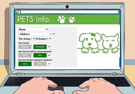 Update your information. Once the chip is implanted, use the chip servicer’s website to make sure the chip displays the most accurate information. Go online and fill out as much information as you can provide, including your cat’s name, your name, your contact information, and information for a secondary contact. Remember to update tags or microchip information every time you move or get a new phone number.
