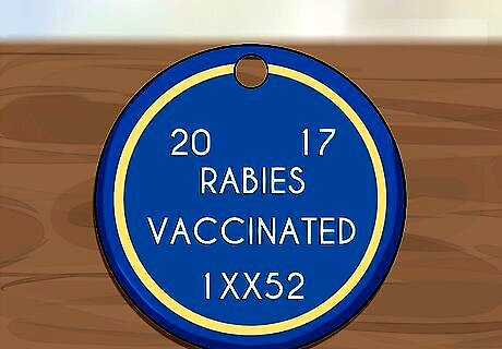 Add a rabies vaccination tag. In addition to a customized ID tag, you may want to consider attaching your cat’s rabies vaccine tag to their collar. The ID number on the vaccine tag can sometimes be cross-referenced by a vet to pull up your contact information should the normal ID tag get lost. A new rabies vaccine tag should be given to you whenever you get your cat vaccinated. If one is not provided upon checkout, ask the vet or technician that administered the vaccine for a new tag.