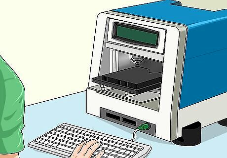 Go to the pet store. Most pet stores have machines where customers can buy tags directly. Typically, a customer will buy tokens or credits for the machine at the register, then use the tokens or credits with the machine to choose and customize the tag. Machines are generally able to engrave quickly, with the tag ready in three to five minutes after the ID information is input.