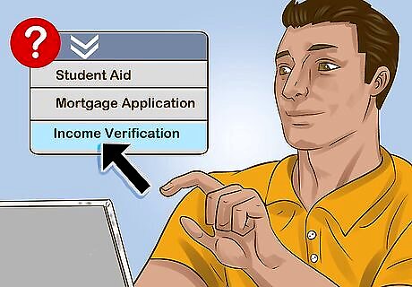 Choose why you need the transcript. There are many different types of tax transcripts. To help you find the one that you need, the online portal will ask you why you are requesting a transcript. Choose an option from the drop down box, such as "Student Aid," "Mortgage Application," or "Income Verification."