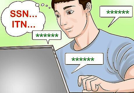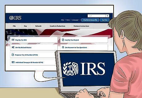 Create an account at IRS.gov. If you already have an account, log in. If you don't, go to the IRS website, and click "Get my Tax Record." Then click "Get Transcript Online." To make a new account you will need to provide: Your full name Email Date of birth Social Security Number (SSN) or Individual Tax Identification Number (ITIN) Tax filing status (single, married, etc.) Mailing address used on the last tax return Mobile phone number that accepts texts