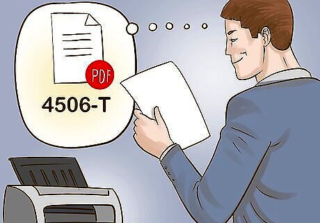 Fill out and print form 4506-T. You can fill out the form using a PDF reader. Type in the employer identification number (EIN), the address, and the name on the original return. Check which type of transcript you would like. Print the form out when you are done. You can find the form at https://www.irs.gov/pub/irs-pdf/f4506t.pdf.