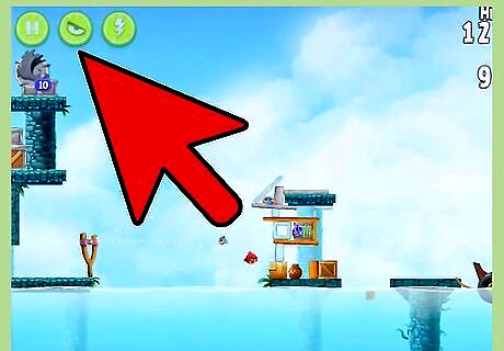 Resume gameplay, then tap on the Mighty Eagle icon to activate the feature. All your birds will disappear, and a can of sardines will appear on your slingshot.