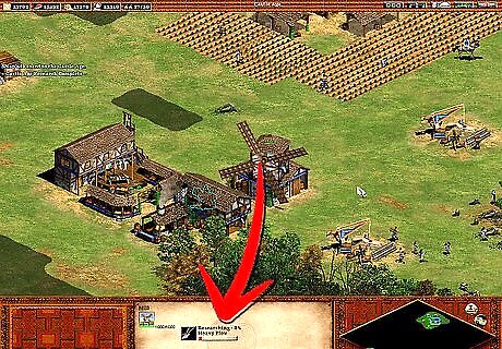 Research Heavy Plow. This is found at the mill and makes farms last longer. This makes it easier on the lumberjacks, as wood is in great demand in the Castle Age. Additionally, you need to create more farms. More farms should be built around the first Town Center, and farms should be created around the second (and subsequent) Town Center. Farms can also be created around the mill, although this is less safe, as the villagers are more vulnerable to rushers.Make Your Economy Boom in Age of Empires 2 Step 18Bullet1.jpg Also research Bow Saw and Gold Mining.Make Your Economy Boom in Age of Empires 2 Step 8Bullet1.jpg