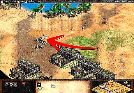 Allocate villagers to stone. Castles are expensive (650 stone) and it is important that in the Castle Age that you build a castle. A mining camp should be built next to a stone mine and Stone Mining should be researched. This does not mean that you should ignore your other villagers, however. Along with farms being built, villagers should also be allocated to wood and especially gold.Make Your Economy Boom in Age of Empires 2 Step 12Bullet1.jpg