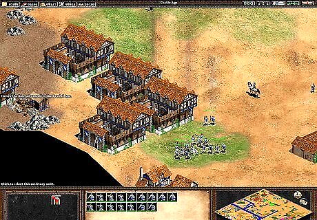 Immediately build a Town Center with at least three lumberjacks. Building another Town Center is an important step towards not only a good economy, but also makes the Imperial Age requirement easier to achieve. During the Castle Age, more Town Centers should be built to further increase villager production.Play As the Goths in Age of Empires 2 Step 10Bullet2.jpg