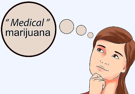 Use the other “m” word. When you visit a dispensary, when you talk to your doctor, and anytime you’re talking about your purchases, it’s a good idea to get in the habit of referring to it as medicine, not “weed” or “pot” or other slang terms. This is the approved dispensary term. Medical marijuana activists have done lots of work to change the vocabulary and the connotations with marijuana. The more you work to refer to it as medicine, the more it will be accepted as medicine. Calling it "pot" reinforces the stigma that you're using recreational drugs, not legal medicine.