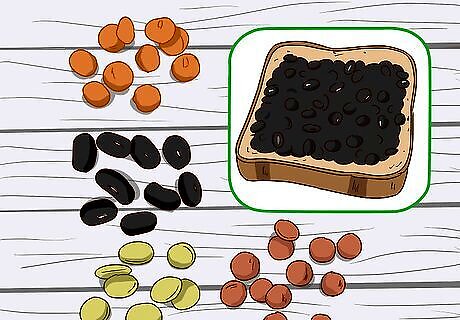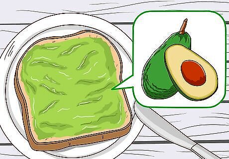 Spread avocado on toast. Avocado is a high-fiber fruit, and avocado toast is a simple recipe that has found its way to the brunch menu of many trendy restaurants. To make your own at home, spread avocado on whole-grain toast. You can experiment with spices or add roasted chickpeas or lentils on top for even more fiber.