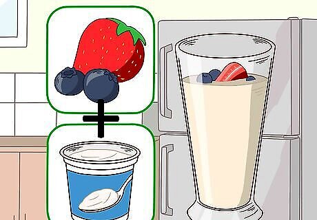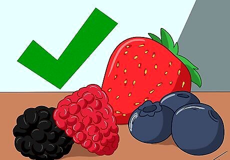 Have a handful of berries. Berries are high in fiber, particularly because you usually eat them whole with the peel intact. Just a handful of berries with your normal breakfast can drastically increase the fiber you have at breakfast. Fresh blueberries and strawberries also work well on top of your cereal or oatmeal, or mixed into yogurt. You also might blend berries into a morning smoothie.