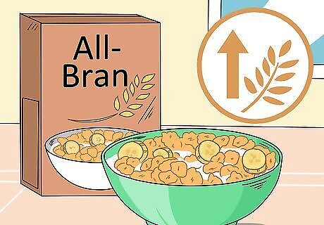 Choose a high-fiber breakfast cereal. If you normally start your day with a bowl of dry cereal, switching to a high-fiber brand is a good way to get more fiber at breakfast. There are many cereal brands, such as All-Bran and Fiber-One, that focus primarily on being a healthy source of fiber. Try to avoid cereals with too much refined sugar or artificial ingredients. If you normally eat Corn Flakes, for example, you can switch to Bran Flakes and add 6 grams of fiber to your breakfast. Aim for a cereal with high bran content, or stick with your favorite cereal and simply mix in a few tablespoons of unprocessed wheat bran with it each morning.