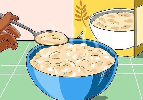 Have a bowl of oatmeal. Particularly when the weather outside turns cold, a bowl of oatmeal can be a warm and satisfying way to start your day, and also provides as many as 8 to 10 grams of fiber per serving. If you don't care for the taste of oatmeal, sweeten it with maple syrup or honey. Add berries and nuts, or other sliced fruit, to further increase the amount of fiber you're getting at breakfast.