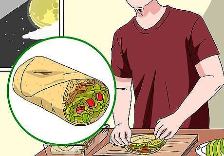 Make breakfast burritos in advance. Breakfast burritos made with a whole-grain or high-fiber tortilla wrap can provide between 10 and 15 grams of fiber per serving, depending on the fillings you use. You can make a breakfast burrito from scratch in a few minutes, but if your mornings are particularly busy you can also make a batch in advance and freeze them. Include salsa and leafy greens to up the fiber content. You also might include avocado, which is particularly high in fiber.