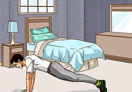 Do stretches. Stretching is a great way to de-stress and loosen up tight muscles after a night of sleep. Performing a few yoga poses while on your bed can get your metabolism going and make you feel more awake, too. Sit up in your bed and clasp your hand high above your head. Lean into the muscles on your left side. Hold for a few seconds. Then, lean to the right. Make invisible circles with your nose, allowing your neck to stretch. Do a spinal stretch by placing one hand on your knee and then turning gently to face the headboard. Repeat on the other side.