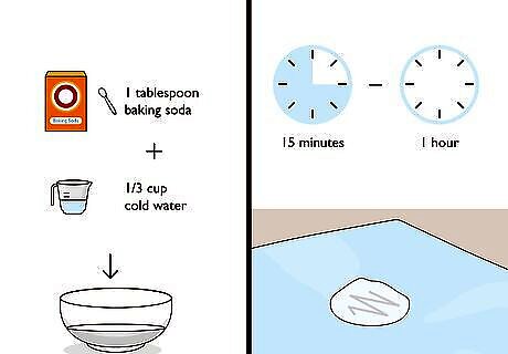 Use baking soda for a multi-purpose marker-stain remover. Stir 1 tablespoon (14.4 grams) of baking soda into ⁄3 cup (79 mL) of cold water to make a paste. Then, spread the paste evenly over the stain. Gently rub the paste into the stain in a circular motion. Let it sit on the stain for about 15 minutes to an hour, then wash in the washing machine as usual. Baking soda can be used to remove permanent marker stains from upholstery and carpets, as well as clothing fabrics. You can also try a baking soda toothpaste instead of making your own paste. However, because toothpaste may contain other ingredients that could affect the fabric, make sure that you test it out on a spot that isn't visible first. If your fabric is not machine washable, try sprinkling baking soda on the stain until it is covered. Use a toothbrush to scrub the baking soda into the fabric until the stain starts to lift, then use cold water to flush the baking soda off the fabric.