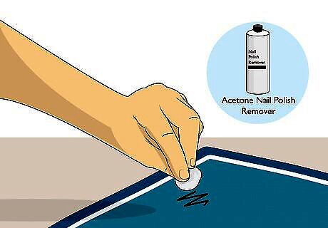 Try an acetone nail polish remover on sturdy fabrics. Dip a clean sponge or cotton ball in acetone nail polish remover until it's soaked but not dripping. Dab the nail polish remover directly onto the stain, adding more polish remover as needed until the stain has lifted. Most acetone nail polish removers contain both alcohol and acetone, both of which can help dissolve and remove permanent marker stains from fabrics. Acetone can be tough on delicate fabrics, such as thin cotton or linen. As a result, only use acetone nail polish remover to get rid of permanent marker stains on sturdier fabrics, such as thick cotton towels, carpet, or upholstery.