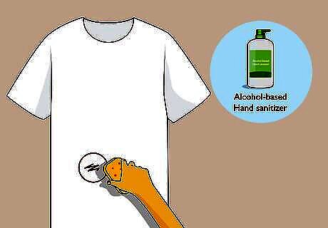 Use alcohol-based hand sanitizer to remove marker from clothing. Squeeze a quarter- or dime-sized dot of hand sanitizer onto the stain, depending on how big the stain is. Gently spread the hand sanitizer over the stain in a circular motion with a clean sponge. Let it settle for about 15 minutes. If the stain is still there, repeat this whole process until the stain is removed. Because hand sanitizer is made for your skin, it tends to be gentler than other alcohol-based options, making it a good option for more delicate fabrics and clothing.