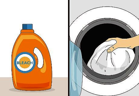 Get rid of the marker stain with bleach if the fabric is white. If you get permanent marker on white fabric, such as white clothing, sheets, or a tablecloth, you can remove the marker stain by washing the fabric with bleach. If the fabric is machine washable and bleach safe, you can add bleach to your laundry and run the washing machine with hot water. If the fabric is bleach safe but not machine washable, you can soak the fabric in bleach for 10 minutes and rinse with cold water to remove the marker stain. Make sure that you always check the tag on the fabric to make sure that it is bleach safe. Otherwise, using bleach may ruin the fabric, even if it is white.