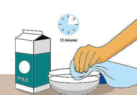 Soak your clothing in milk to remove permanent marker stains. Fill a bowl with regular cow's milk. Then, put the entire marker-stained portion of the fabric into the bowl. Make sure that it is completely saturated in the milk. Let the stain soak in the milk for about 15 minutes, then remove it and wash in the washing machine as usual. Because milk can sour and cause a bad smell, make sure that you are able to machine wash or thoroughly clean the milk from the stained fabric after the stain has lifted.