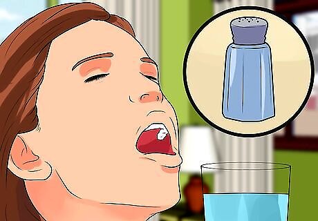 Rinse with warm sea salt water. Warm sea salt water can help with pain and it may also help to heal an infection.To make a warm sea salt water rinse, mix about one teaspoon of sea salt with one cup of water. Stir until the salt dissolves in the water. Then, sip enough of the fluid to swish in your mouth and swish for about a minute. Spit out the fluid when you are done. Repeat this process several times throughout the day to help with pain and promote healing.